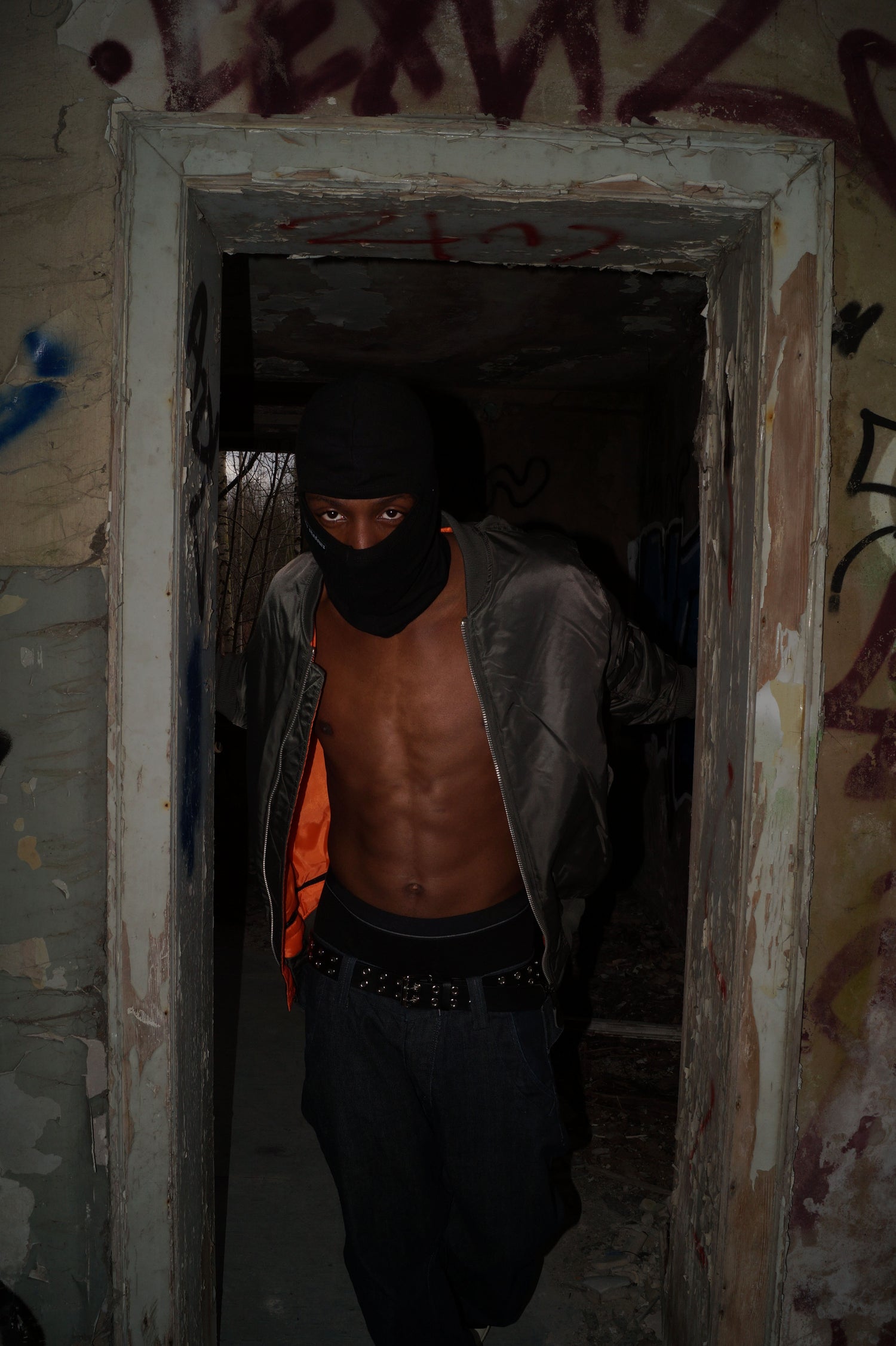 - anthracite/greenish jacket with white print